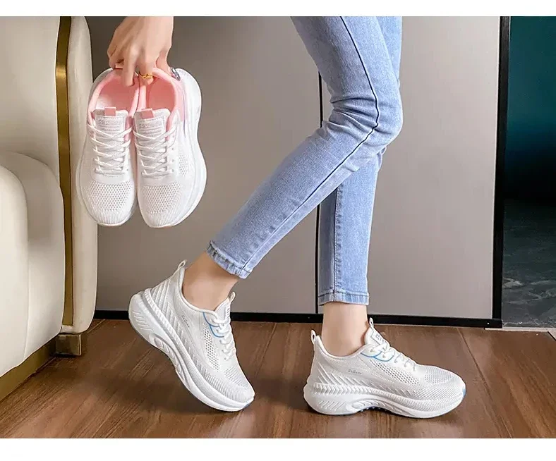 شراء أحذية تنس بيضاء خفيفة الوزن للنساء ، أحذية المشي عارضة ، أحذية الجري تنفس ، في الهواء الطلق