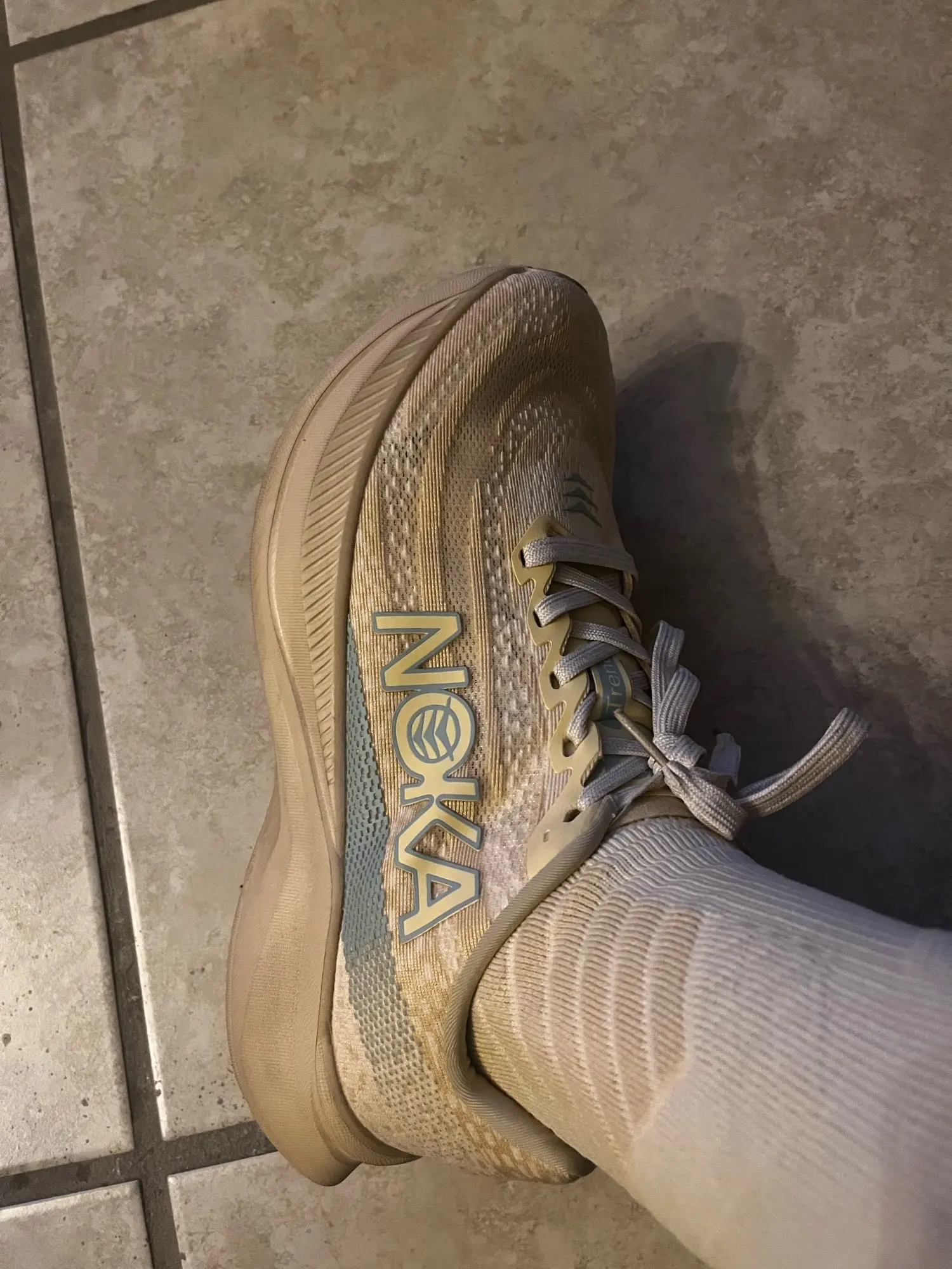 Nice shoes, but very wide. Good for length, but they’re on a big, even powerful foot. I don’t know if they’ll be fit for me to run.