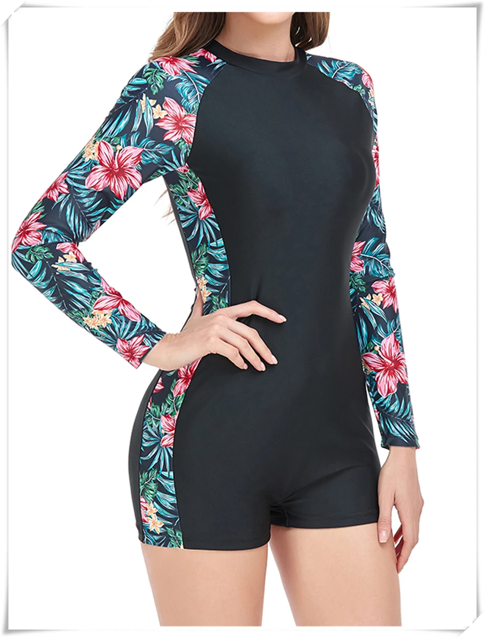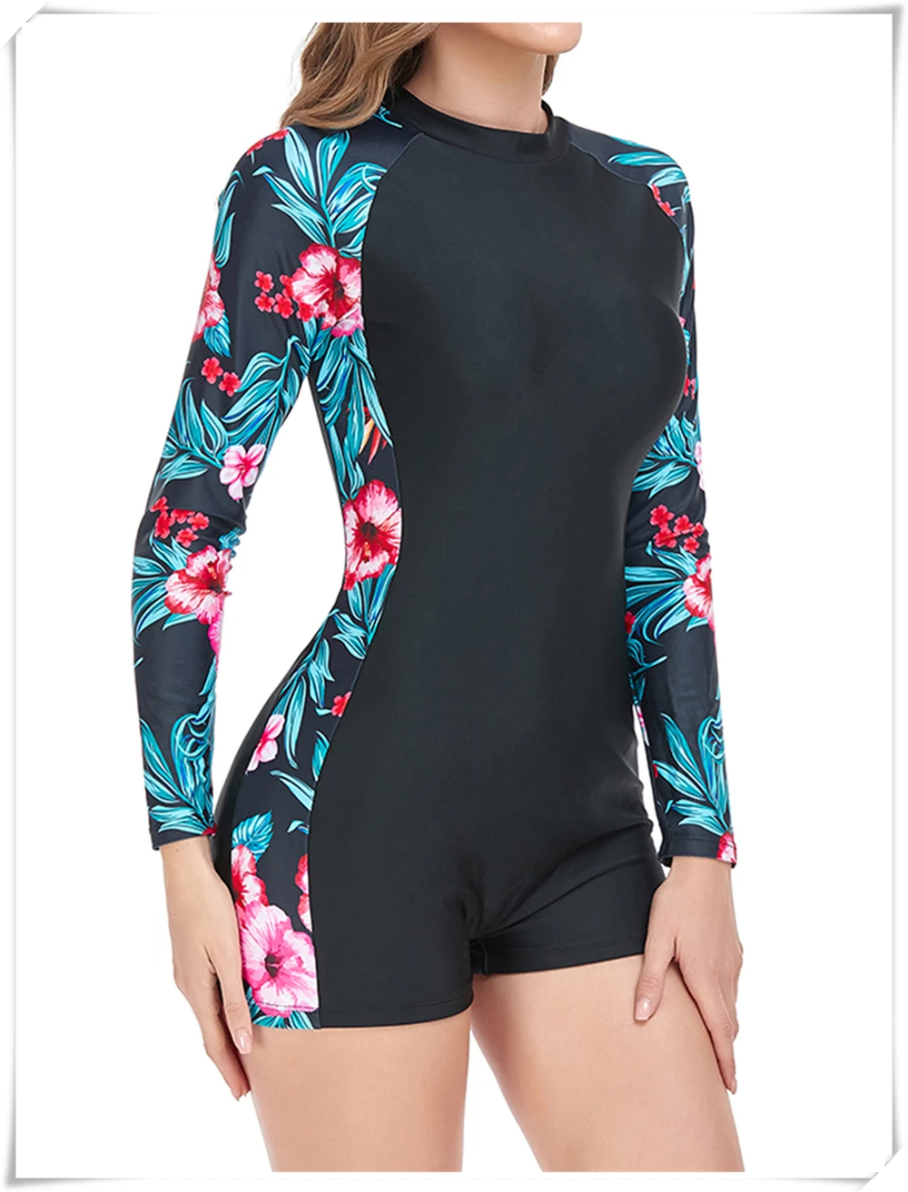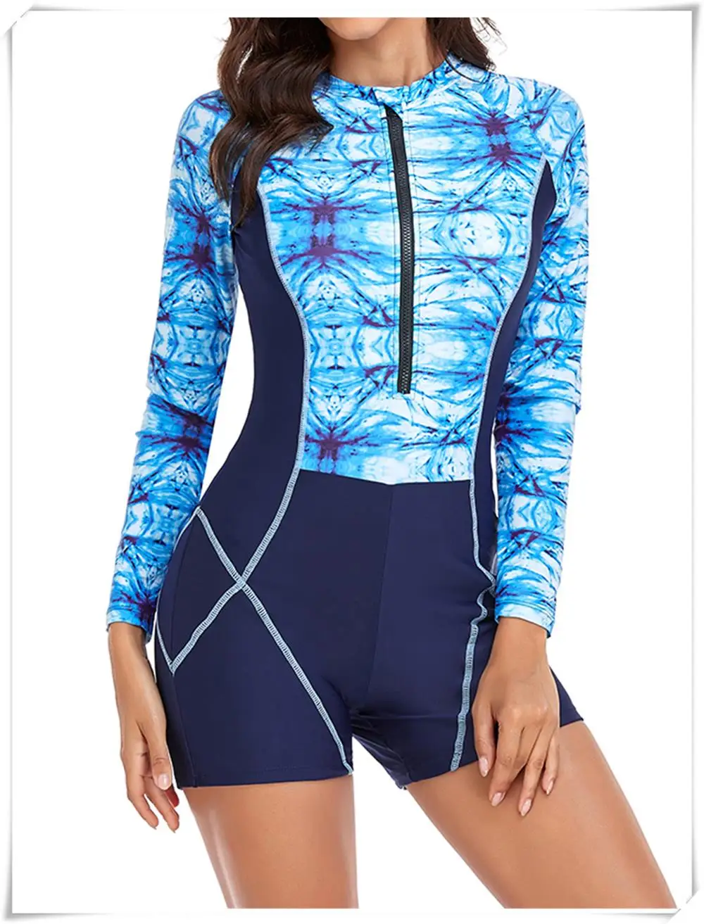 شراء بدلة سباحة مطبوعة بأكمام طويلة موضة 2023 بدلة سباحة نسائية من قطعة واحدة للتزلج على الماء بدلة سباحة للسيدات مع سحاب ملابس غوص Rashguard بدلة سباحة للاستحمام