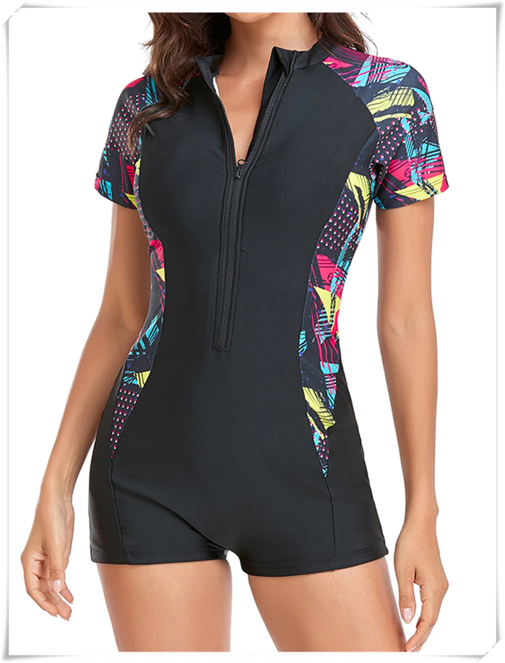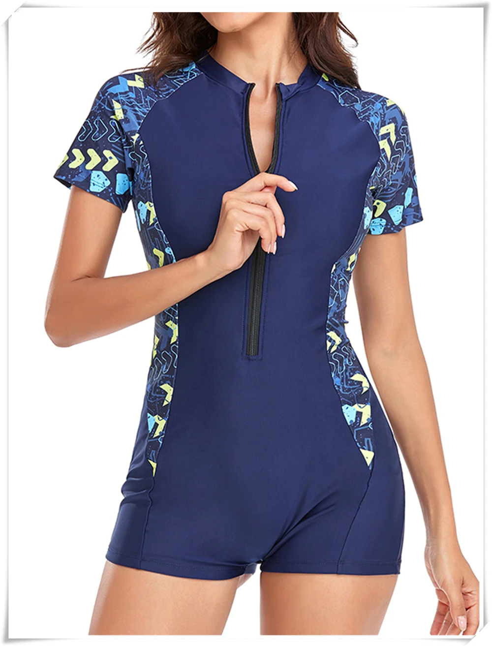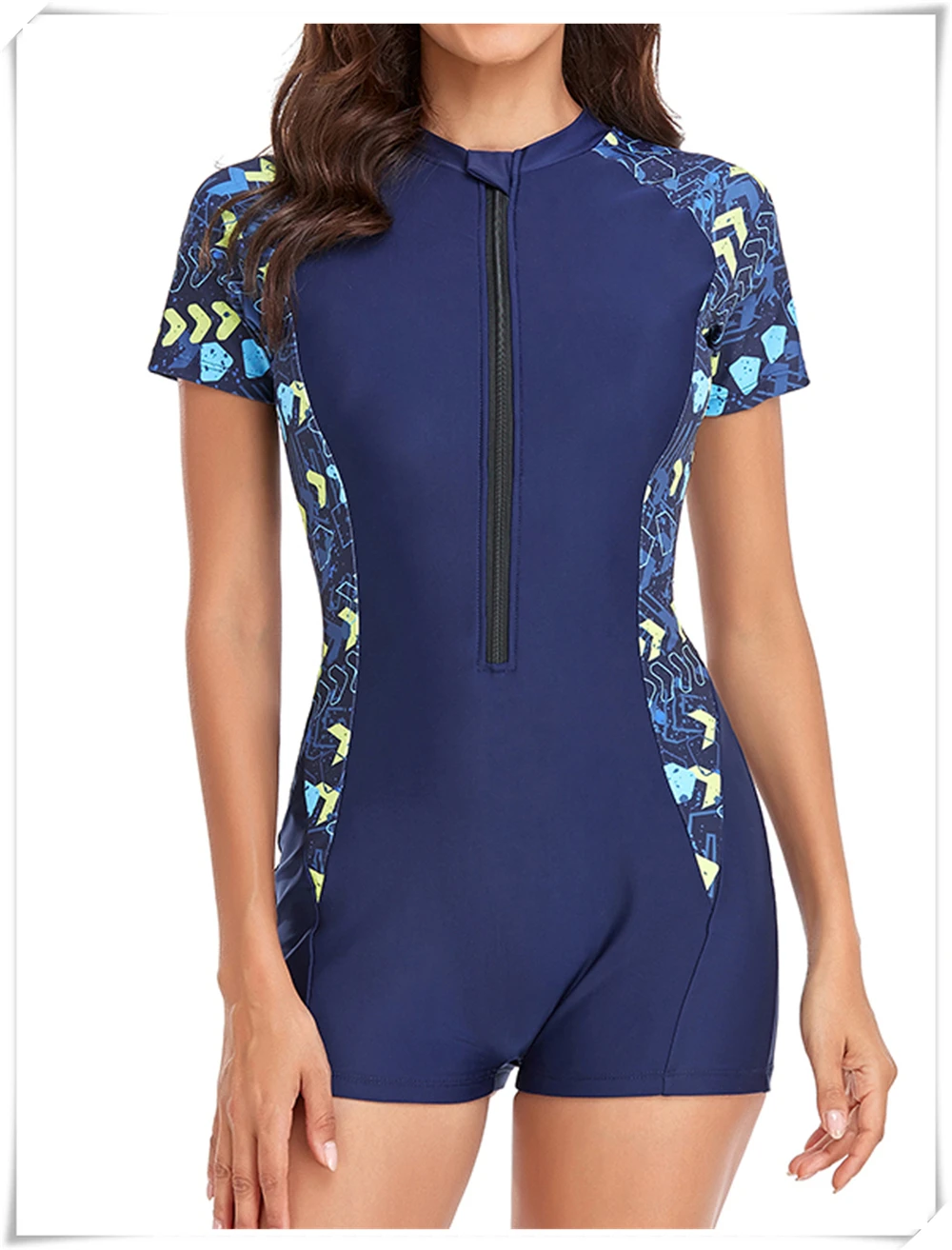 شراء بدلة سباحة مطبوعة بأكمام طويلة موضة 2023 بدلة سباحة نسائية من قطعة واحدة للتزلج على الماء بدلة سباحة للسيدات مع سحاب ملابس غوص Rashguard بدلة سباحة للاستحمام