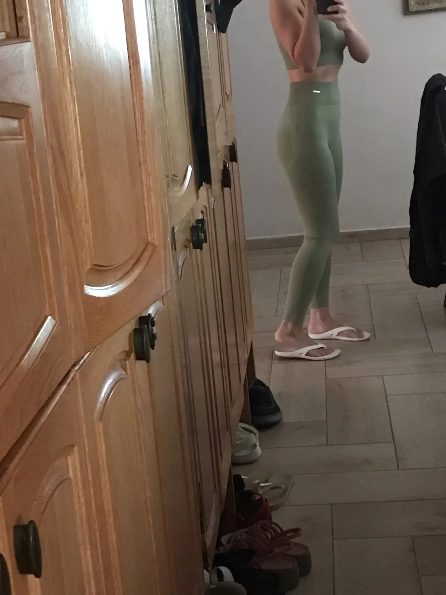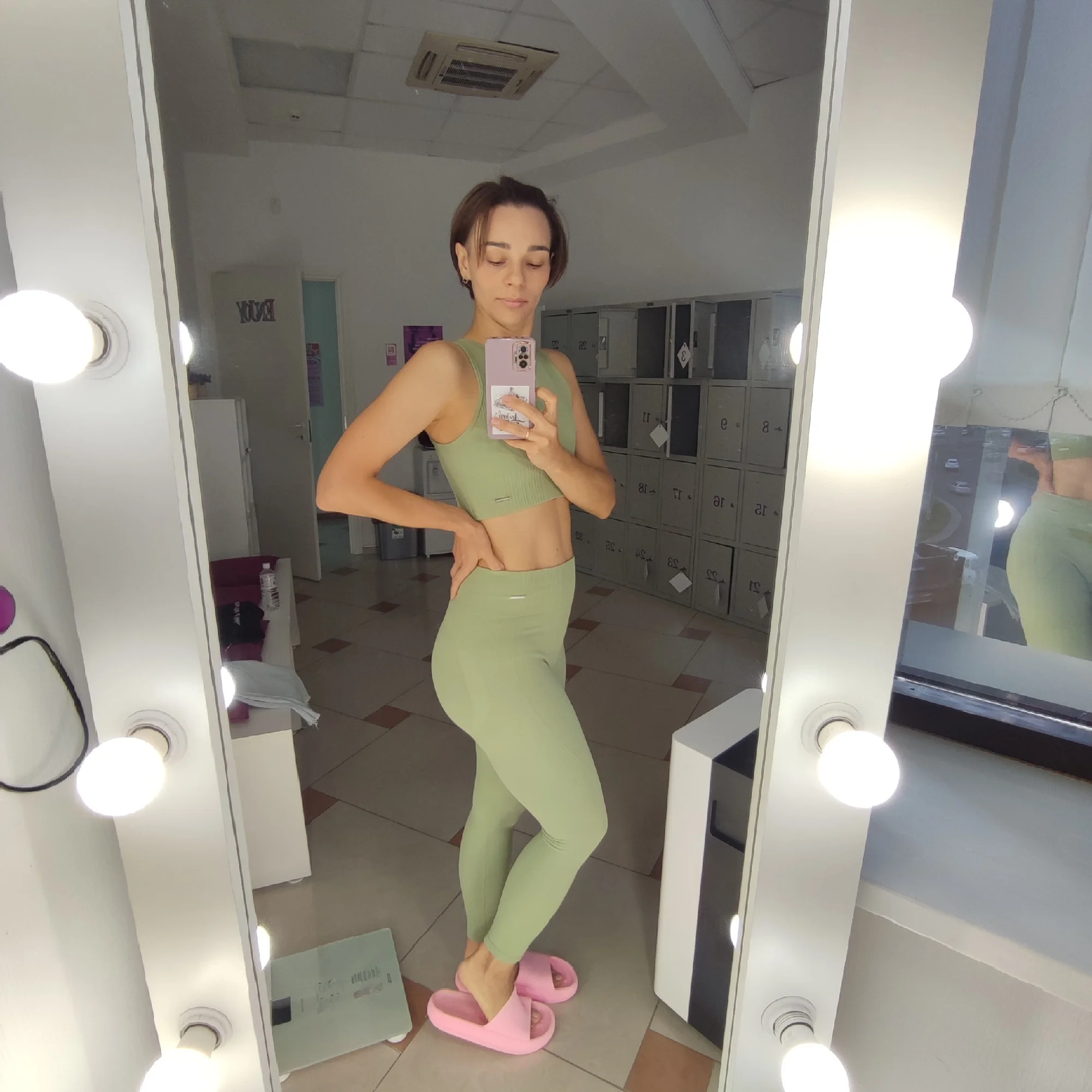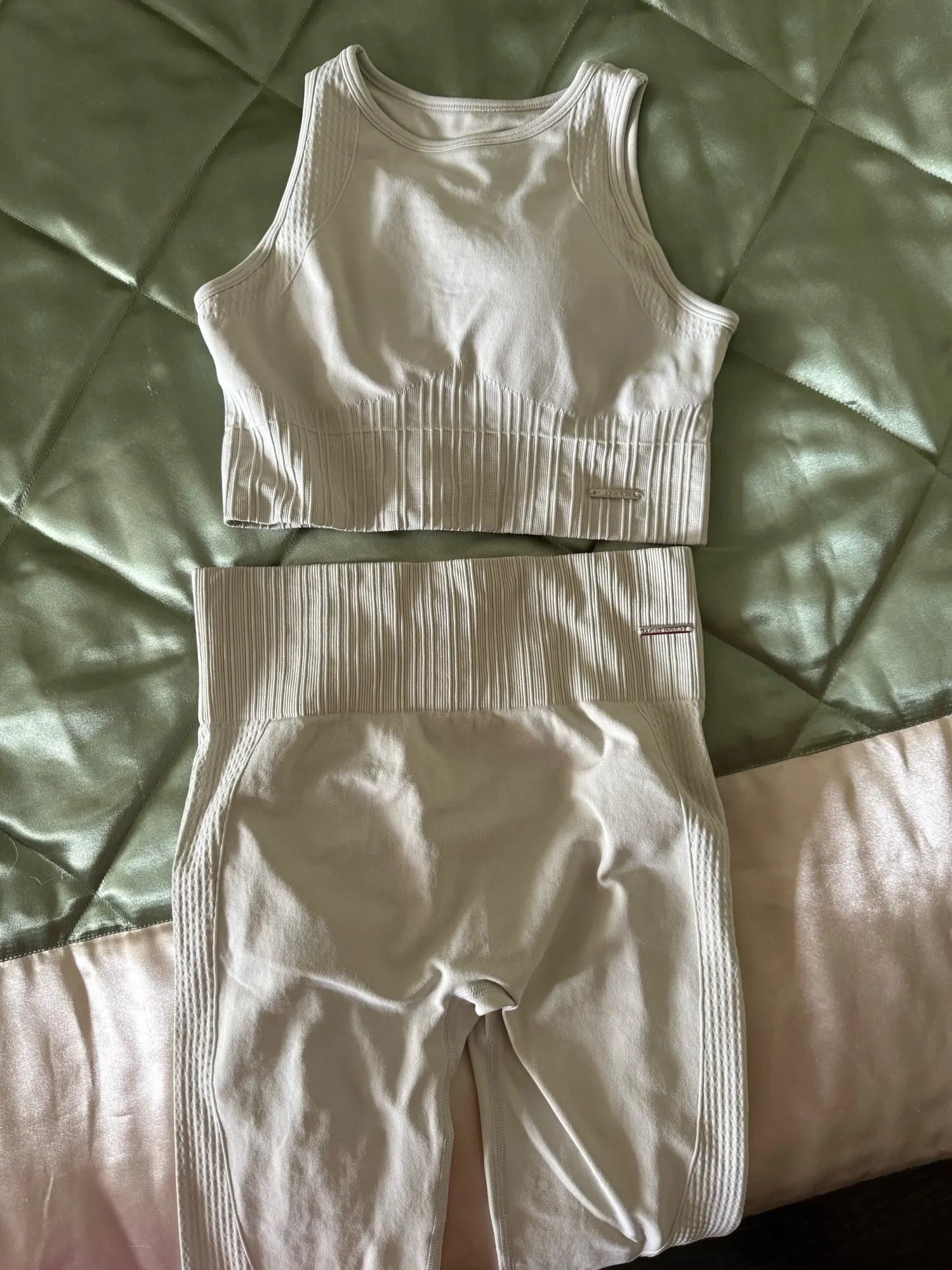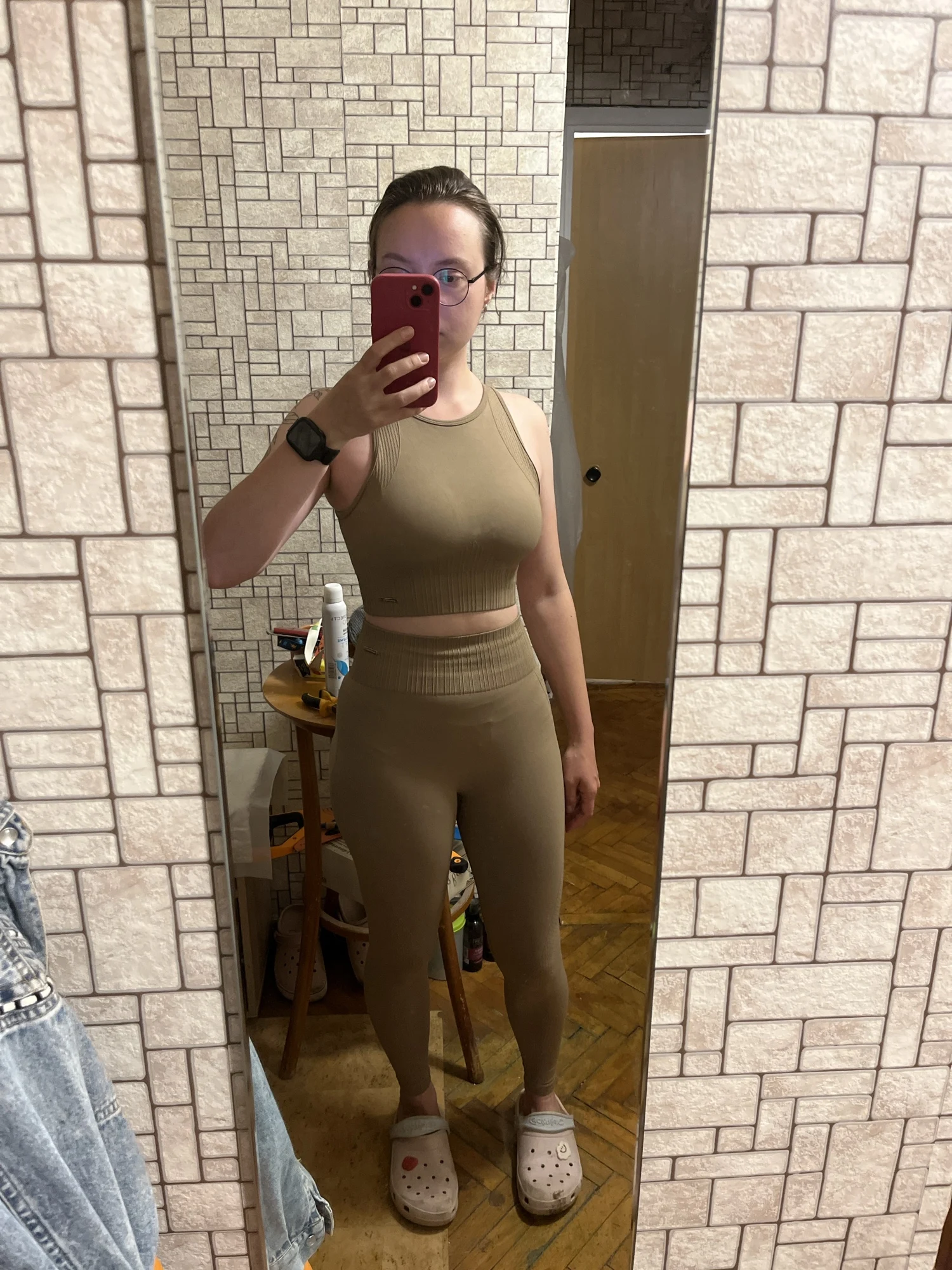 لقد أحببت المجموعة ، الجزء العلوي ليس قصيرًا وكذلك طماق مرتفع مما يوفر الأمان ، والنسيج مريح وبارد