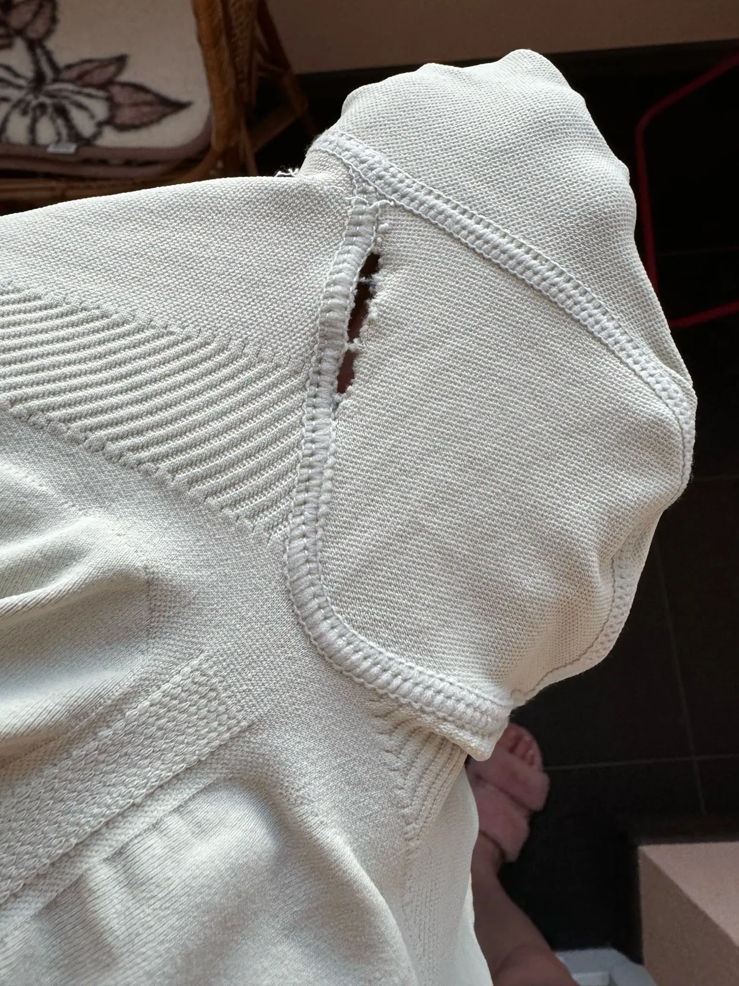 Thank you for the seller’s quality product and fast delivery! The material is seamless, does not cut or press anywhere during training. Hot of course, but this is synthetics.
