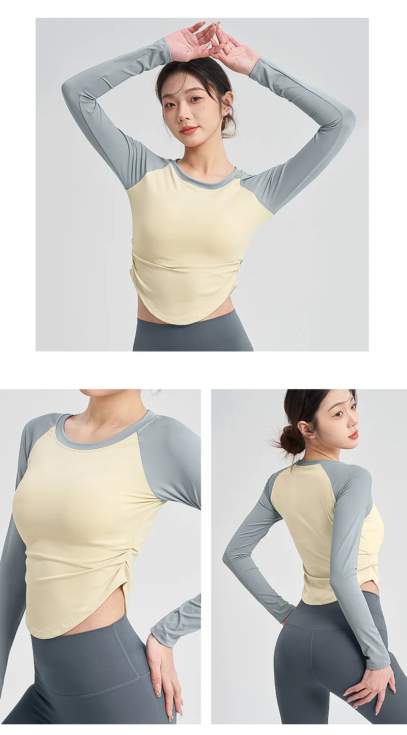 شراء تدريب اليوغا سترة طويلة الأكمام في الهواء الطلق ملابس رياضية النساء الصالة الرياضية ضئيلة تشغيل ملابس اللياقة البدنية