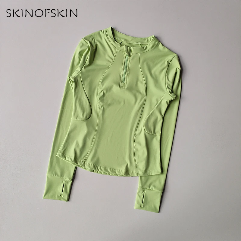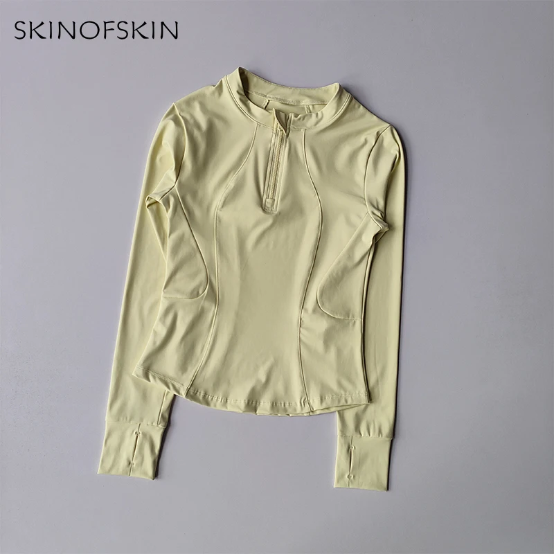 شراء تي شيرت رياضي سريع الجفاف للنساء ، قمة اللياقة البدنية ، أكمام طويلة ، مرن ، نصف سحاب ، تنحيف ، جري ، ملابس يوجا ، خريف