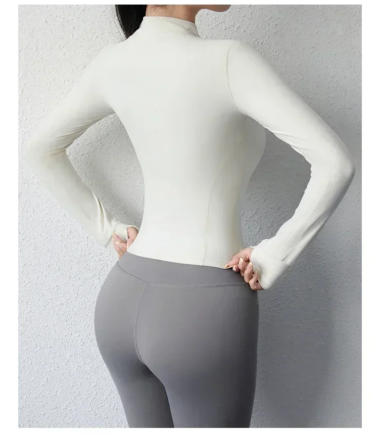 شراء جاكيت سريع الجفاف للنساء ، ملابس اليوجا ، الجري ، اللياقة البدنية ، سحاب ، علوي ، طويل ، نحيف ، تدريب ،