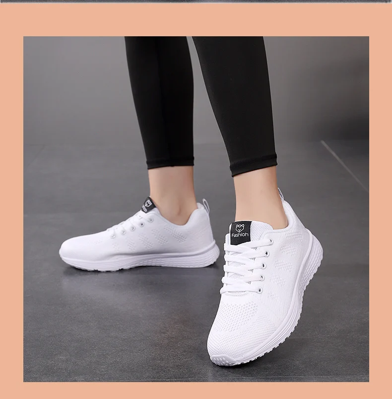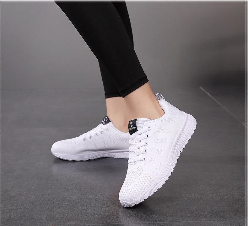 شراء حذاء مسطح شبكي جيد التهوية للنساء ، أحذية رياضية غير رسمية ، أحذية مشي ، أبيض ، أحذية رياضية للسيدات ، موضة جديدة