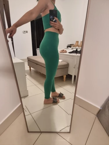 قماش suabe السوبر ، أنا أحب كيف يناسب الجسم. إنه ثابت ويتيح لي التحرك بشكل جيد للغاية وأفضل شيء هو أنه لا يميل إلى الالتفاف في الساقين أو في الجزء العلوي. أنا أحب ذلك.