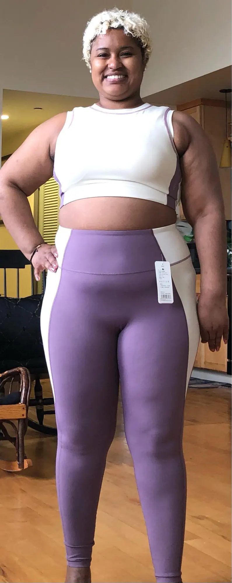 The gym set fits my body. It is very comfortable and soft. The pants are not too long. I feel very petite in the outfit. Now I have something new to wear to the gym.