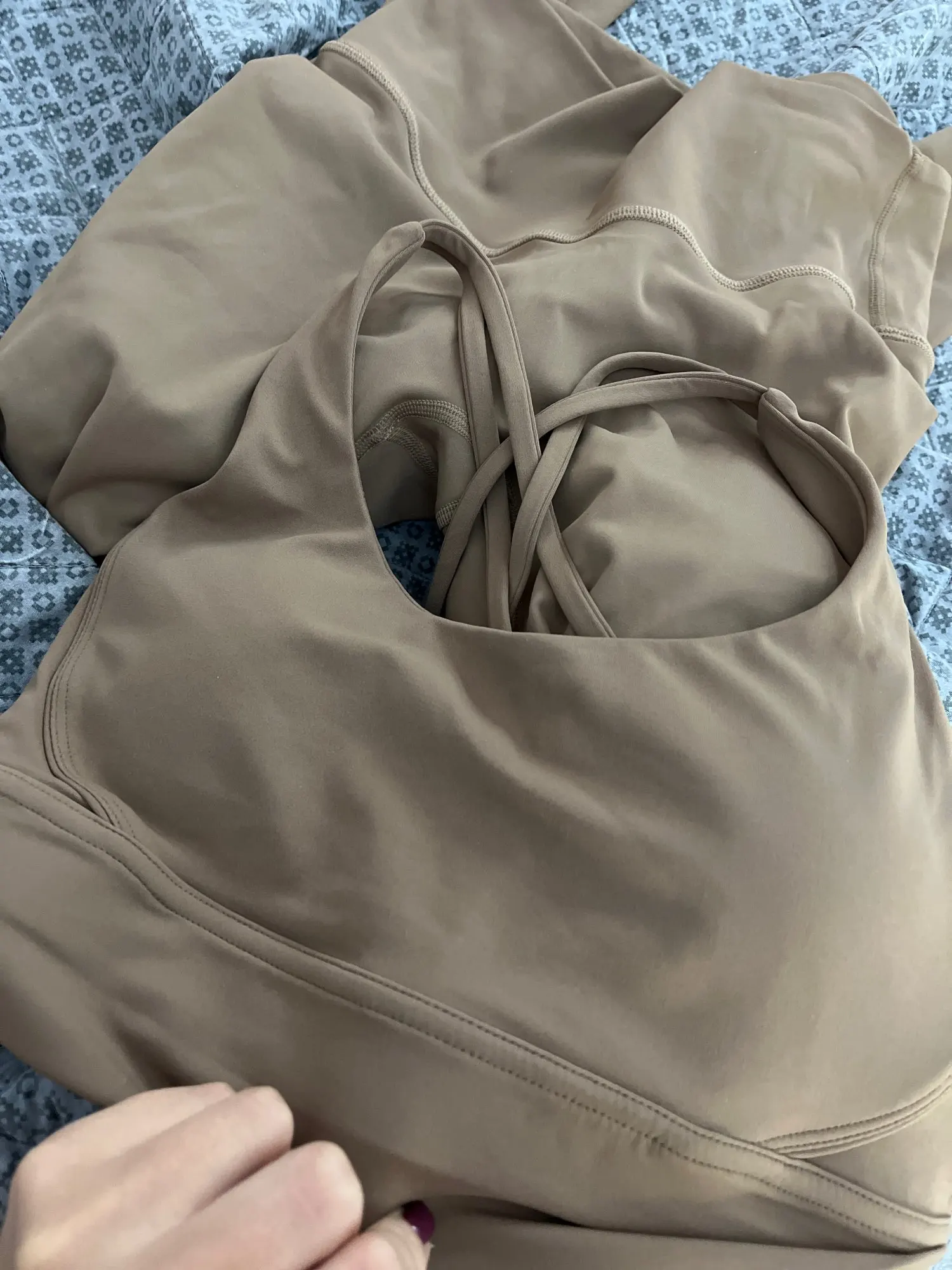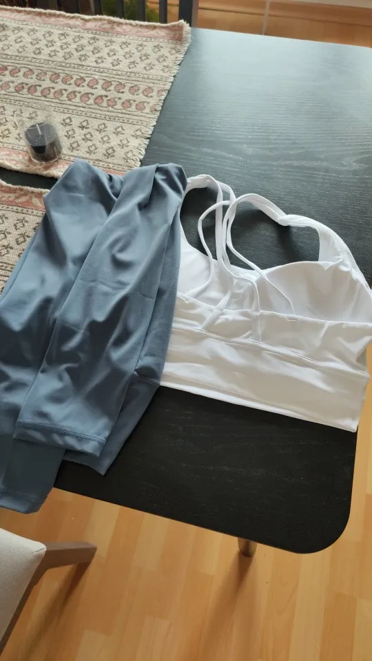 مجموعة لطيفة جدا. الجزء العلوي يحمل جيدا ، ولها أكواب وقابلة للإزالة. Legggin رقيق إلى حد ما أكثر غير شفاف ، إنه ذو مسودة عالية والنسيج ناعم